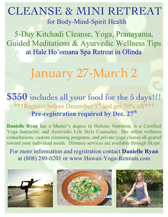 Danielle Ryan has a Master's degree in Holistic Nutrition, is a Certified Yoga Instructor, and Ayurvedic Life Style Counselor. She offers wellness consultations, custom cleansing programs, and private yoga classes all geared toward your individual needs.
