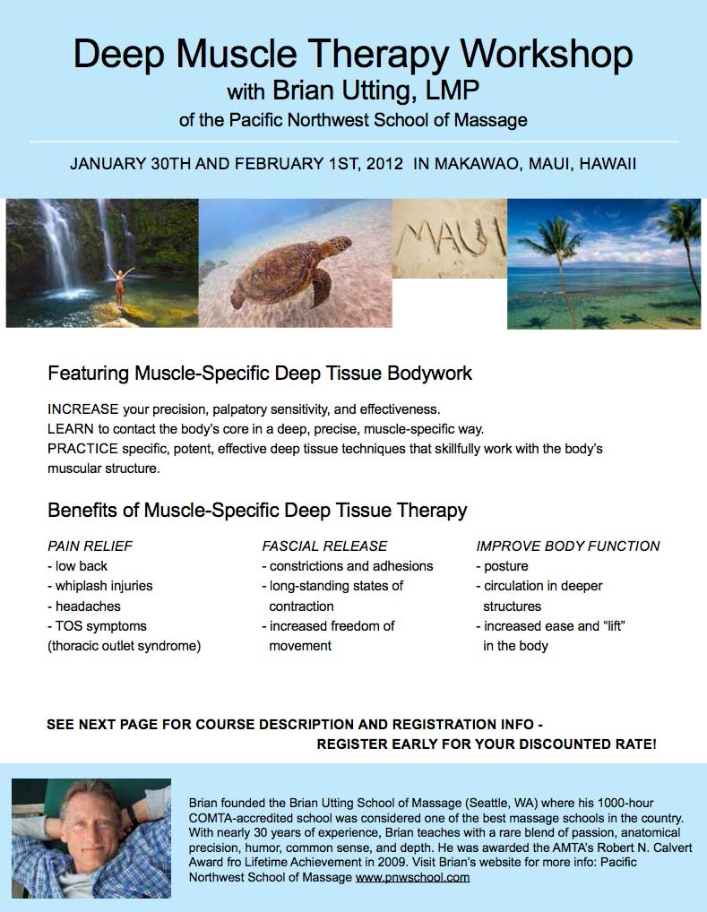 Increase your precision, palpatory sensitivity, and effectiveness. Learn to contact the body's core in a deep, precise, muscle-specifity way. Practice specific, poten, effective deep tissue techniques that skillfully work w/ the body's muscular structure.